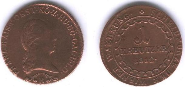 B: v kruhu zevnitř s girlandovým pásem, v něm: 1 / KREUTZER / 1812 //, na obvodu: SOLIDMUNZE DER ---