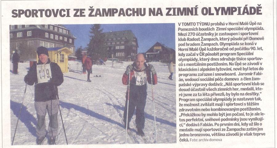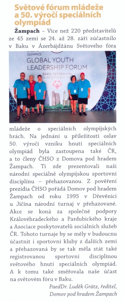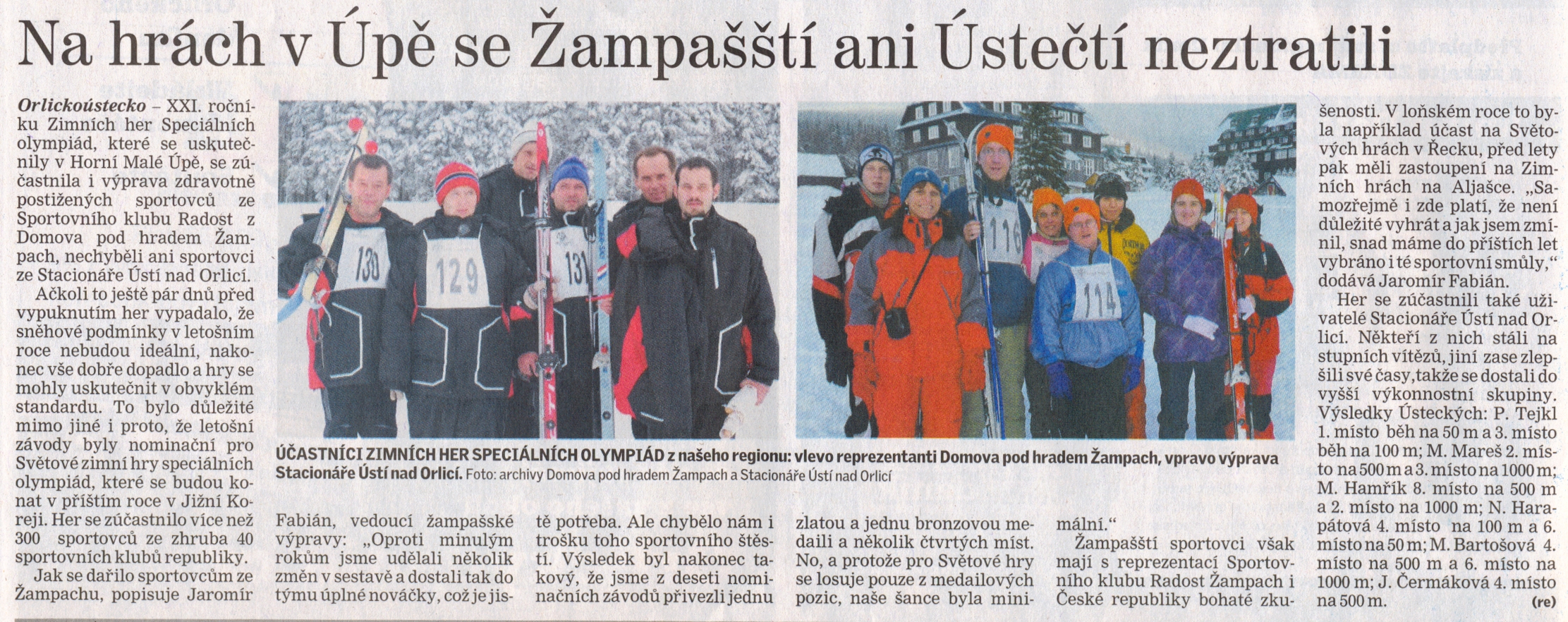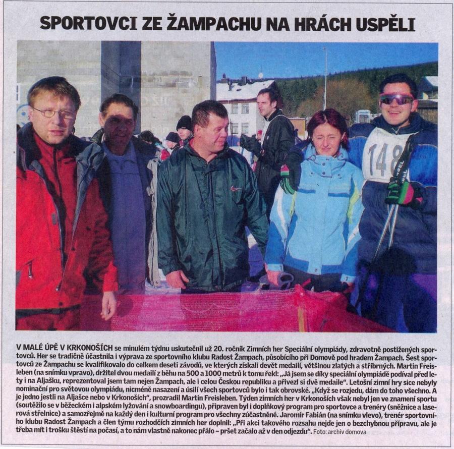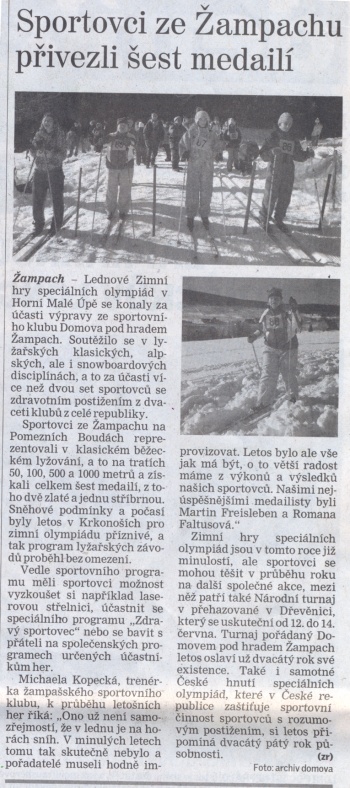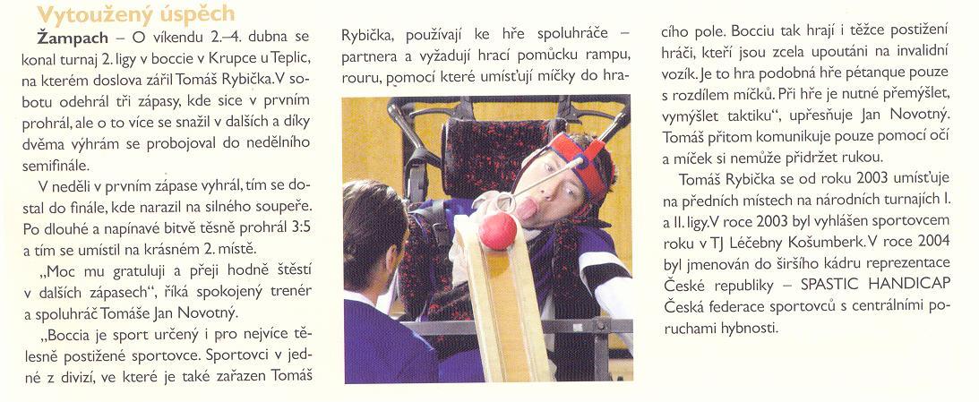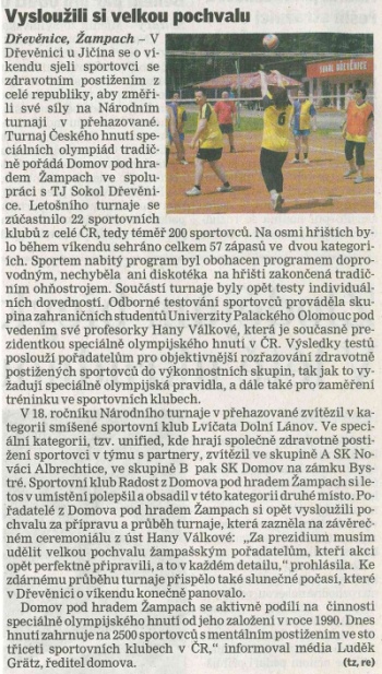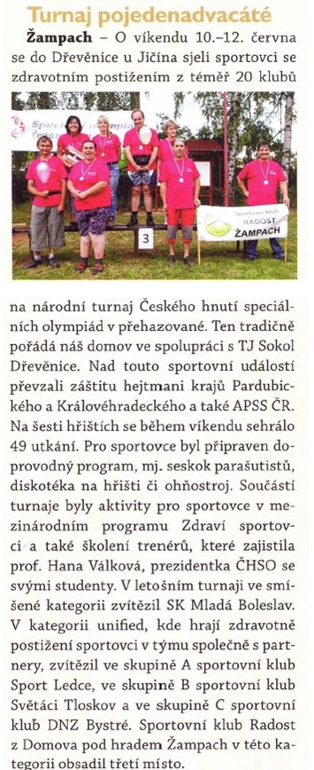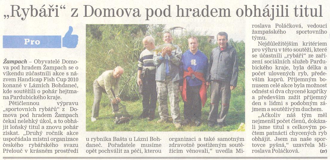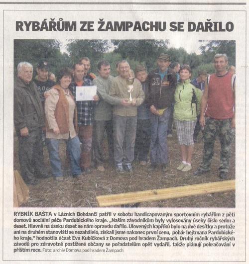HANDICAP FISH CUP 2009 - 12. září 2009 - rybáři z Domova pod hradem Žampach získali na rybníku Bašta v Lázních Bohdanči pohár hejtmana Pardubického kraje za vítězství v rybářských závodech. článek na www - deníku Český rybářský svaz - MO Přelouč - www