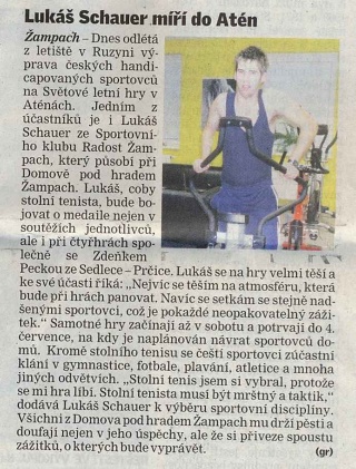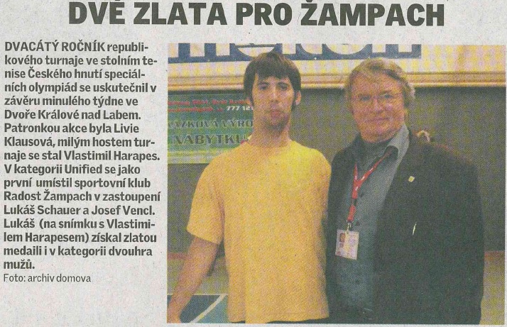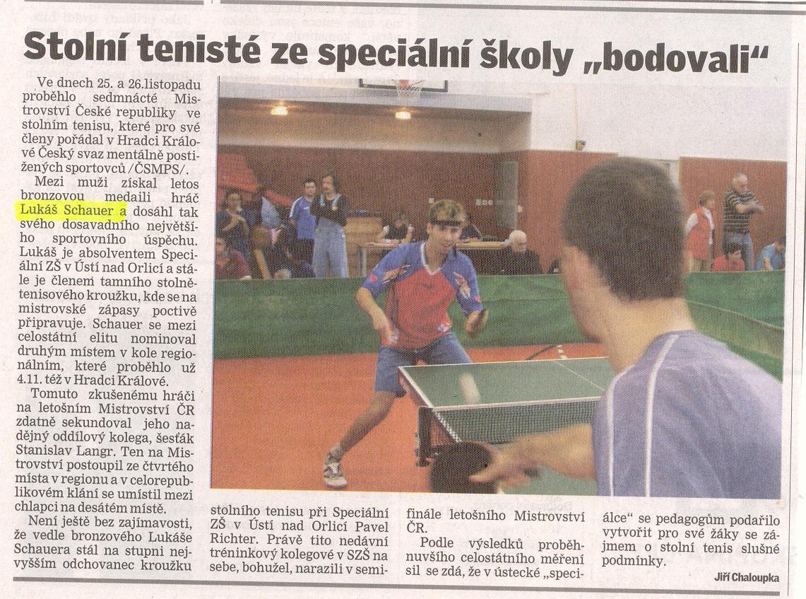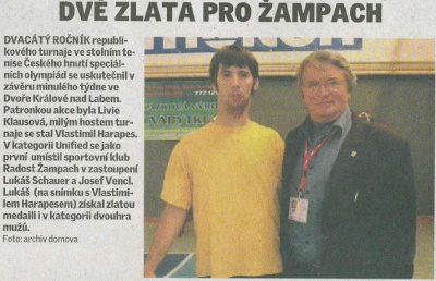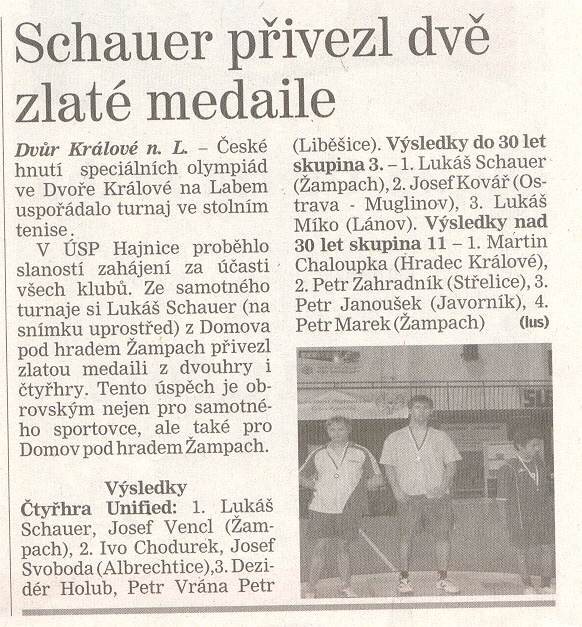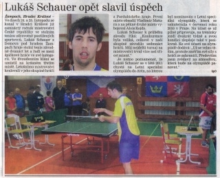 19. Mistrovství České republiky ve stolním tenisu handicapovaných sportovců Hradci Králové - 1. místo Lukáš Schauer