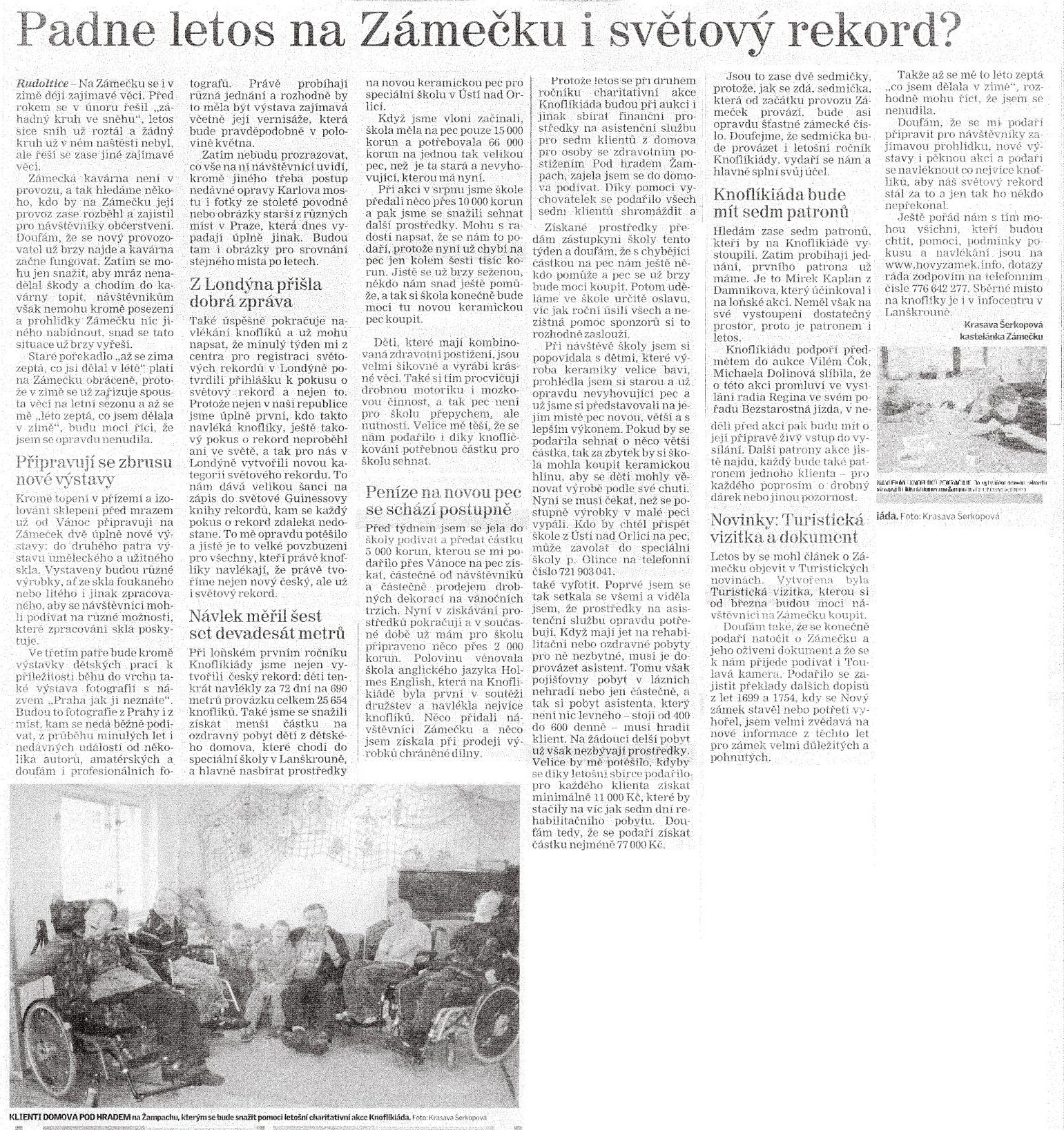 Knoflíkiáda - charitativní akce na Zámečku - Rudoltice u Lanškrouna: článek na www deníku - zde článek - výstřižek - zde