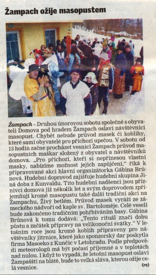 Masopust na Žampachu, 9.2. 2013 - video z akce na YouTube
