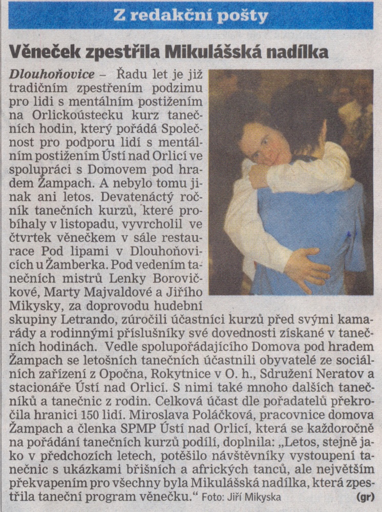 článek na www deníku - zde ZVUKOVÝ ZÁZNAM: reportáž Českého rozhlasu Pardubice - 12.2.2011 03:93 2,5 MB