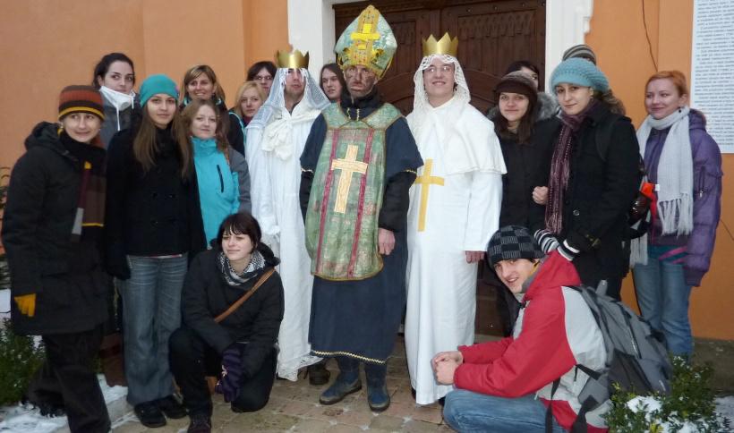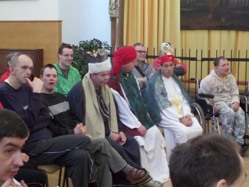 Povídání o příběhu Tří králů (loutkové divadlo) - Zpívání s kytarou - Tříkrálový průvod za účasti obyvatel domova - Drobné občerstvení v kapli