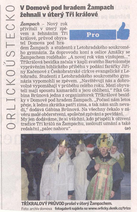 Tisková zpráva 2009 - článek - jako obrázek - zde. Článek 2 - zobrazit - zde Žamberecké listy - článek jako soubor PDF - zde