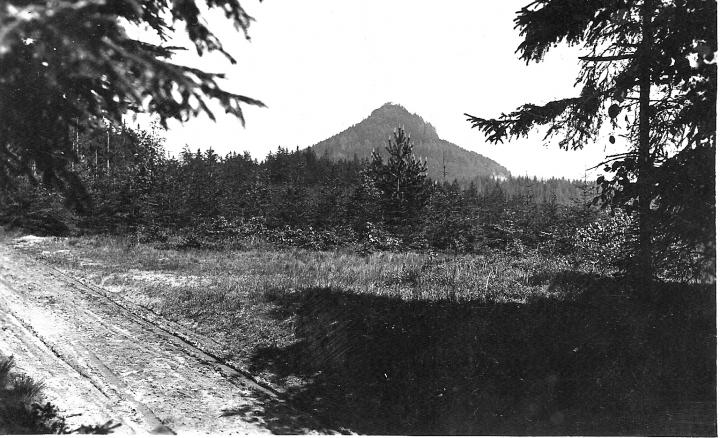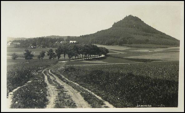 Písečná, v pozadí Žampach cca 1978 Žampach cca z roku 1978