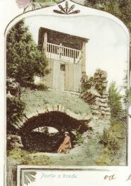 První vyhlídková stavba nad zříceninou Restaurace postavena velkostatkem p.č. 69 v r.1890. cca z r. 1890 V restauraci byl i kuželník.Pro malou účast hostů od r. 1921 byla četnickou stanicí. Letní hostinec postaven v r. 1890,silnice postavena 1892 1904 Pranýř u vzdušného mostu je na původním místě nad Aligrovým křížkem, poté přemístěn do lesa k Javůrkově chatě. Od roku 1920 stojí na místě chalupy čp 37.