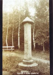Pohled z r. 1930 Zvonička postavena v r.1929 / třetí/. Pranýř od r. 1920 na třetím místě První v roce 1882 skácel vítr, druhou v roce 1920 neznámý „palič“ podpálil