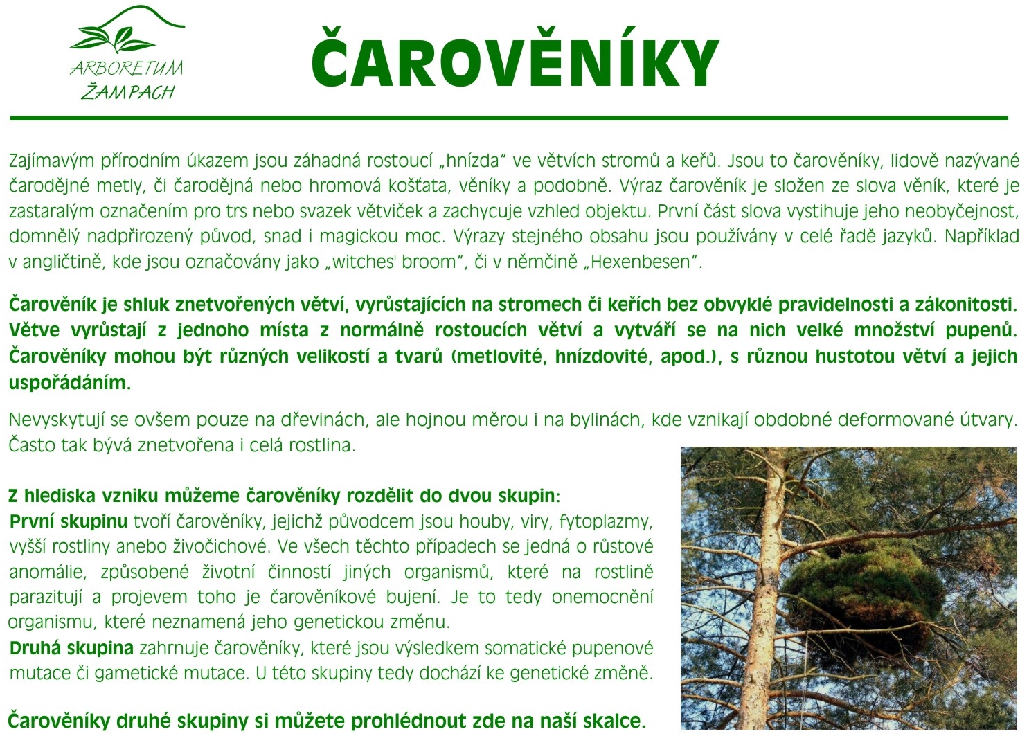 SBÍRKA ČAROVĚNÍKŮ - na skalce - základní informace - zde Info tabulka - čarověníky - náhled - zde.
