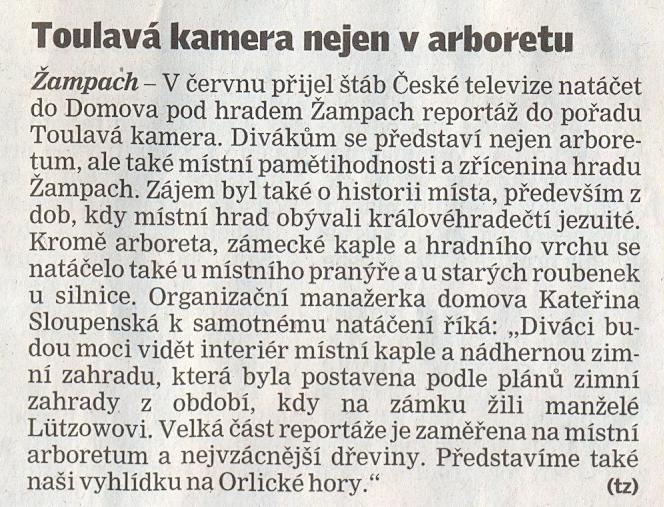 Toulavá kamera č.14 - knižní vydání 2012 - kapitola o Domovu pod hradem Žampach