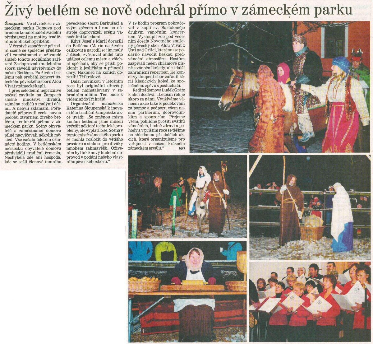 :: Archiv - články, výstřižky novinové - vánoční akce, koncerty a živý betlém ::