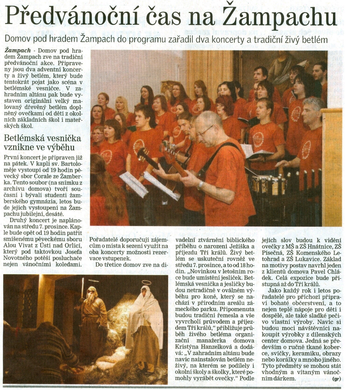 Koncert sboru Corale Žamberk - 2.12.2011 článek novinový 2 - zde článek 2 na www deníku - zde