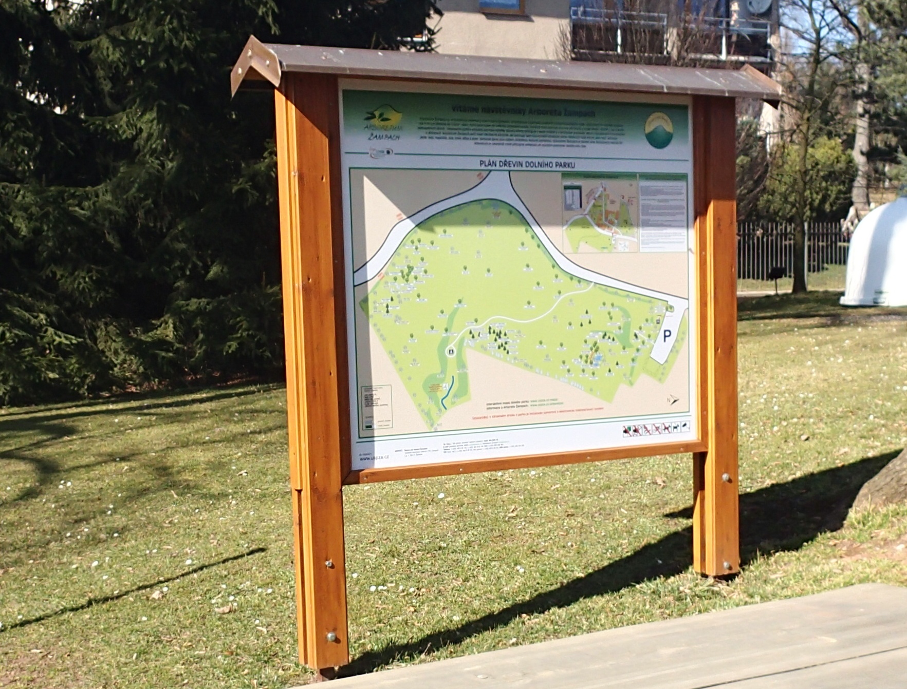 Zpět na rejstřík informačních tabulí Arboreta Žampach - zde PANEL PAMÁTKY - DOLNÍ PARK - TABULE STRANA - A ARBORETUM ŽAMPCH - INTERAKTIVNÍ MAPA DŘEVIN DOLNÍHO PARKU - www.uspza.cz/mapa/ Tabule - plán arboreta - dolní park - jako soubor PDF - zde. ORIENTAČNÍ PANEL - DOLNÍ PARK - TABULE STRANA - B Panel bez číselného označení - zde. Umístění panelu - lavice u veřejného parkoviště