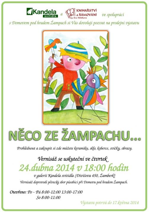 Archivní fotografie - výstava v roce 2013 JARNÍ PRODEJNÍ VÝSTAVA produktů výtvarných dílen Domova pod hradem ampach "NĚCO ZE AMPACHU" 24.4.2014 17.5.2014 Vernisá výstavy se uskutečnila dne 24. dubna 2014 v 18:00 hodin. galerie Kandela svítidla amberk Otevřeno pondělí a pátek: 8:00-12:00 a 13:00-17:00 sobota: 8:00-11:00 Srdečně zveme! Tisková zpráva - zde Článek na www deníku - zde Fotografie z vernisáe - Facebook - zde