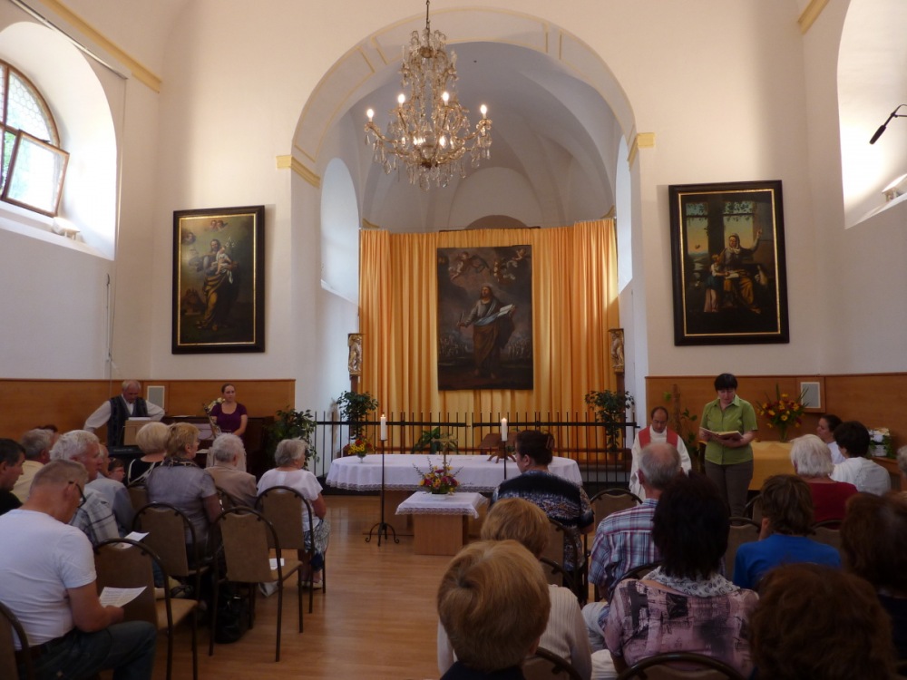 Zpět na hlavní článek k této akci SOBOTA 23. SRPNA 2014 - ŽAMPAŠSKÁ POUŤ sv. BARTOLOMĚJE Z programu poutě: 13:00 - 14:00 - mše - sloužil pan farář Mgr. Josef Roušar z Dolní Čermné - kaple plakátek 14:00 - 14:30 povídání o historii žampašské zvoničky - p. Stanislav Halbrštát - kaple odkaz: z historie zvoničky a fotografie z její opravy v roce 2014 - zde 15:00 taneční vystoupení pod vedením Lenky Uhlířové - před altánem 15:30 promítání filmu ´Lásku hory přináší´ - zimní zahrada 14:30 -18:00 hudba k tanci a poslechu - kapela COMBI - zahradní altán * nabídka výrobků dílen domova * občerstvení * Videozáznam z kaple 23.8.2014 - informace o historii a opravě žampašské zvoničky