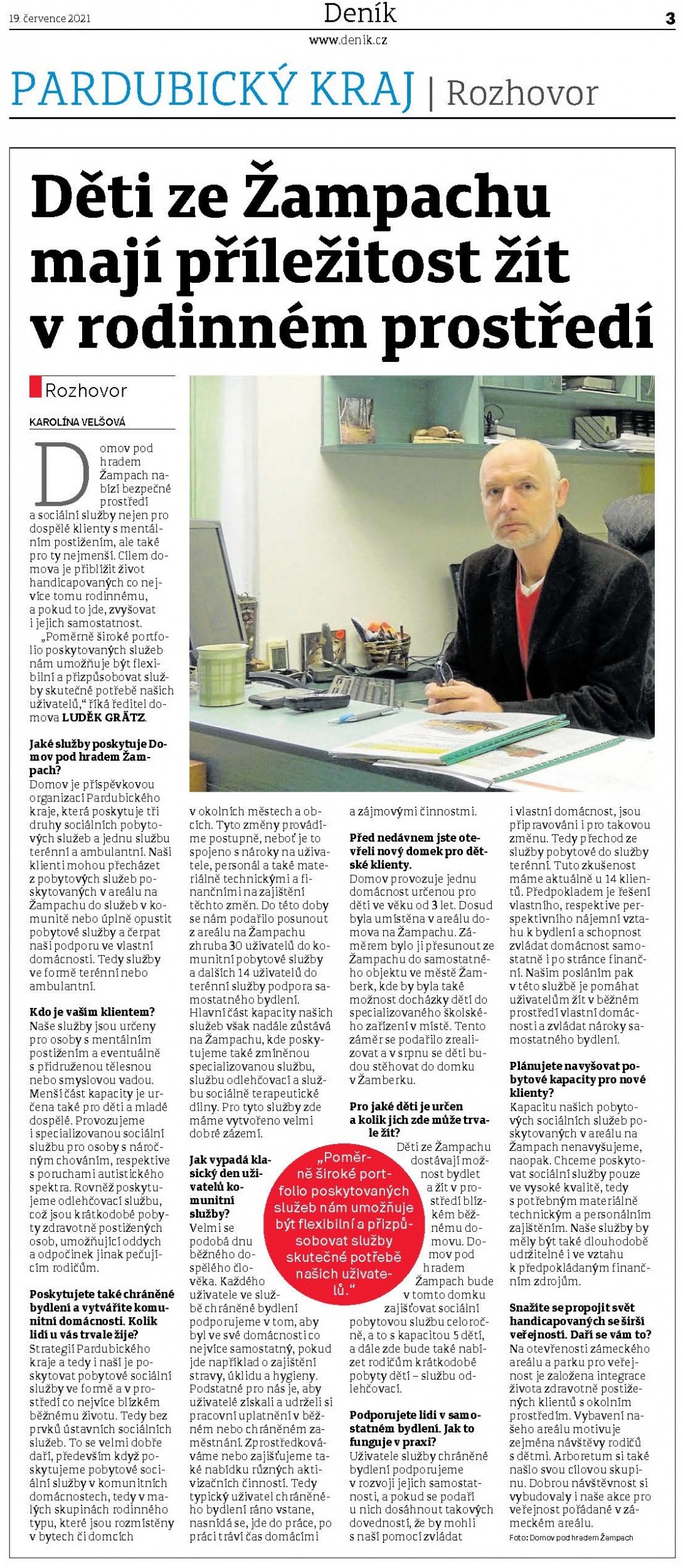 Základní informace k transformaci: www.uspza.cz/transformace Tisková zpráva Pardubického kraje 02/2022 Tisková zpráva Deník 19.7. 2021