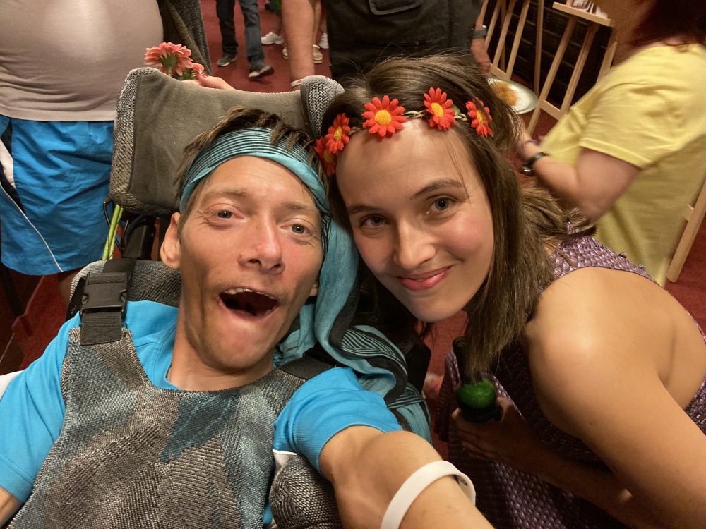 O naší účasti na festivalu: Festival byl moc hezký, po třech letech covidové pauzy. Tentokrát ještě bez zahraničních kolegů. Ale party z celé republiky se sešly, společně vše zhlédly, společně si to užily…, stará přátelství, kultura, nové lidi, nové zážitky… Nejen ty „naše party“, ale běžní lidé, kteří našemu festivalu a tvorbě fandí, jejich kamarádi, slavní, neslavní, hlavně přátelští, prostě fajn. Náš film byl nominován v pěti kategoriích (scénář, hlavní mužská role (Vašek Petrovský), vedlejší mužská role (Miloš Mareš + Bohouš Sutter), vedlejší ženská role (Miluška Harvánková) a v kategorii Nejlepší film. Ocenění pak bylo za vedl. mužskou roli. Přesto jsme se v partě domluvili – že cena je společná pro všechny za celý film😊. Na stránky dáme ukázku z filmu, v průběhu září pak chceme uspořádat večer v alternativní půdě Mezi trámy v Zákopance s promítáním právě našeho filmu DOMŮ a všechny vás pozveme… Musím ještě říci, že s našimi klienty – „hereckou“ partou bylo opravdu dobře. Prostě se chovají ve městě, v dopravních prostředcích, v divadle, hotelu, mezi mnoha a mnoha lidmi přirozeně a slušně. Jsou milí k sobě i ostatním a je hezké s nimi být. Bylo krásné i moci s nimi ten krátký příběh a všechny ty předešlé natočit. Je to taková velká odměna za naší práci. Díky všem, kteří mi pomáháte, díky všem, kteří se na filmy podíváte… Markéta spustit celý film Domů Fotografie z festivalu: další fotografie - zde Filmová tvorba s lidmi s hendikepem v Domově pod hradem Žampach Před čtrnácti roky jsme objevili mezinárodní festival Mental Power Prague Film festival… Objevili, vyzkoušeli a zamilovali si… a od té doby tvoříme krátký film každý rok. Děláme to nejen proto, abychom zažívali neobyčejné chvíle na festivale v Praze, nejen ze soutěživosti, nejen z radosti z dalších projekcí i pouštění si filmů doma pro sebe a přátele, také pro posílení sebevědomí, podporu vzniku nových vztahů v normálním prostředím všech lidí. Hlavně ale i pro pochopení běžné společnosti, že tito lidé jsou fajn, normální, jen s trochu jinými schopnostmi, prostě sem na svět patří stejně jako my. …a proto točíme ! Filmy vznikají díky spolupráci s filmaři videsign.cz. spustit celý film Domů Fotografie z natáčení (Krušné hory 15.10. 2019) další fotografie - zde Mezi trámy, Alternativní půda - Zákopanka 18.9. 2022 Ohlédnutí za letošním MPPFF