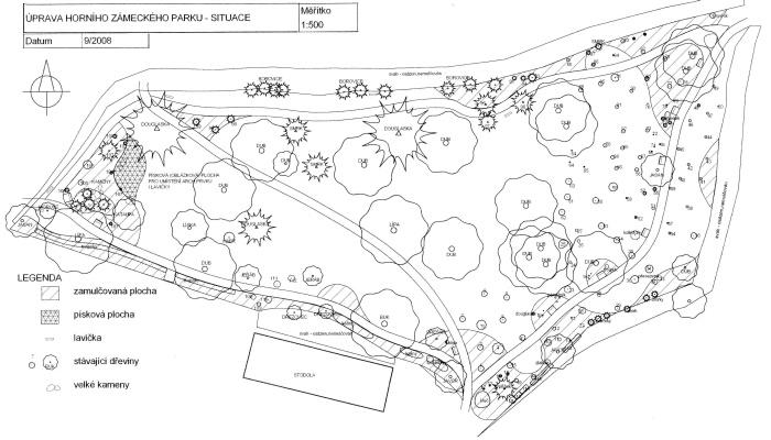 LEGENDA K PLÁNU - SEZNAM STÁVAJÍCÍCH DŘEVIN V HORNÍM ZÁMECKÉM PARKU: seznam ke stažení - jako soubor XLS - jako soubor PDF